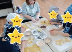 こんにちは!ぶるーむ南郷です(^^)/ 今回はホワイトデークッキングの様子をお届けします! この日作ったのは電子レンジで作るクッキー♡ 前日に生地を仕込んであったので、型抜きからスタートです🌟 「どれにしようかなぁ~?」 沢山ある型から好きな型を選んでどんどん抜いていきます🚗🦕🌟 ある程度抜き終わったら、トッピングも並行して行います🎵 トッピングの材料にはチョコレート、ホワイトチョコレート、マシュマロが用・・・・