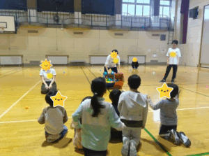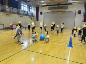 勢いよく転がすのが難しいバランスボールでしたが、少しずつ相手に当てていき南郷が全勝でした✨✨