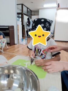 たまには苦手な具材にもチャレンジしてみよう!と励ましてクッキングスタート⭐