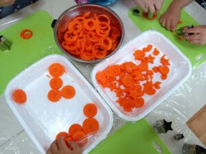 自分の担当している材料の調理が終わったら、大きな鍋で全部炒めて一旦遊ぶ時間に移行します💡