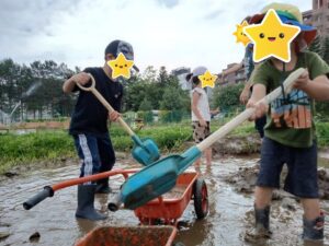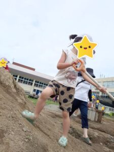 子ども達は長靴を履いてスコップや一輪車を使い、普段できない遊びを目一杯楽しみました⭐