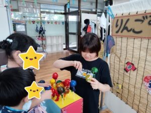 ヨーヨー釣りや、りんご飴屋さん、くじ引きなど楽しいコーナーが沢山😁
