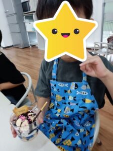 トッピングが沢山用意されており、好きなものを選び自分だけの美味しいパフェを作っていました💕
