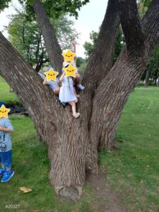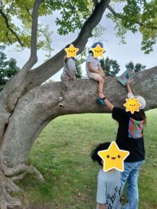 大きな木があり、職員がそこに登ってみせると次々と「登りたーい!!」と子ども達も続々登っていました🌳