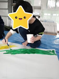 この日は絵の具を使って大きな模造紙にみんなで1つの虹を描きました🌈