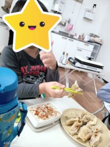 自分の餃子をしっかり作り上げ、自分で作ったものを自分で食べる喜びを感じた子ども達🥟